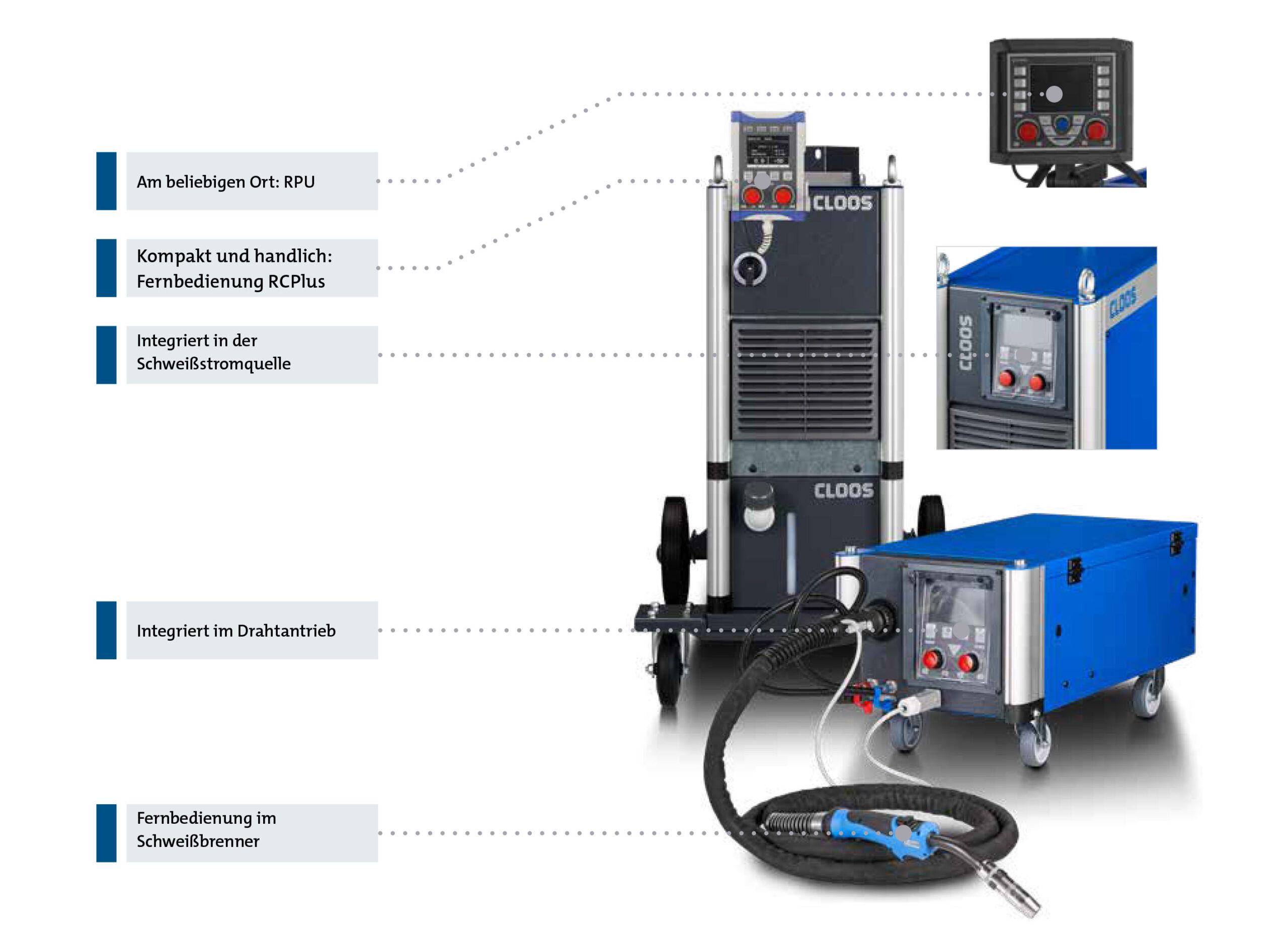 • Direkt losschweißen dank voreingestellter Parameter für vier CLOOS-Schweißprozesse